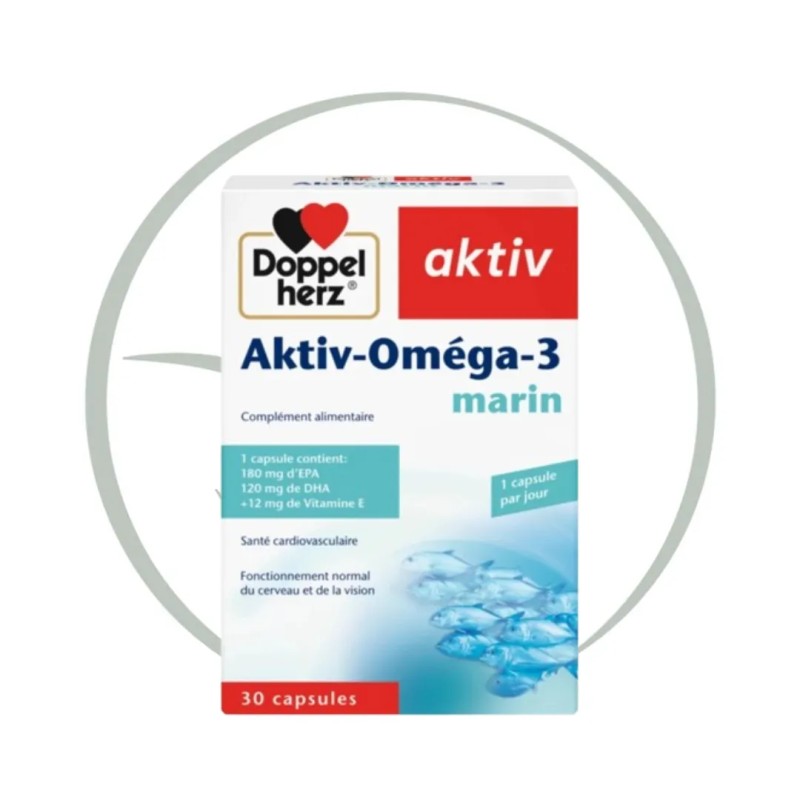 Chaque capsule d'Aktiv Omega 3 contient 180 mg d'EPA et 120 mg de DHA. Ces acides gras contribuent au bon fonctionnement du cœur. Une consommation régulière aide à maintenir une fonction cardiaque normale.