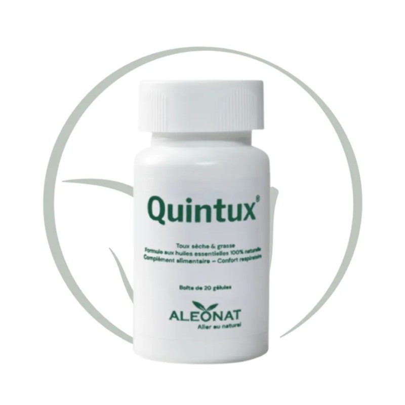 Quintux® est un complément alimentaire à base d'huiles essentielles, formulé pour apaiser la toux sèche, faciliter l'expectoration lors de toux grasse et assainir naturellement les voies respiratoires. Idéal pour accompagner les périodes hivernales ou les épisodes de gêne respiratoire.