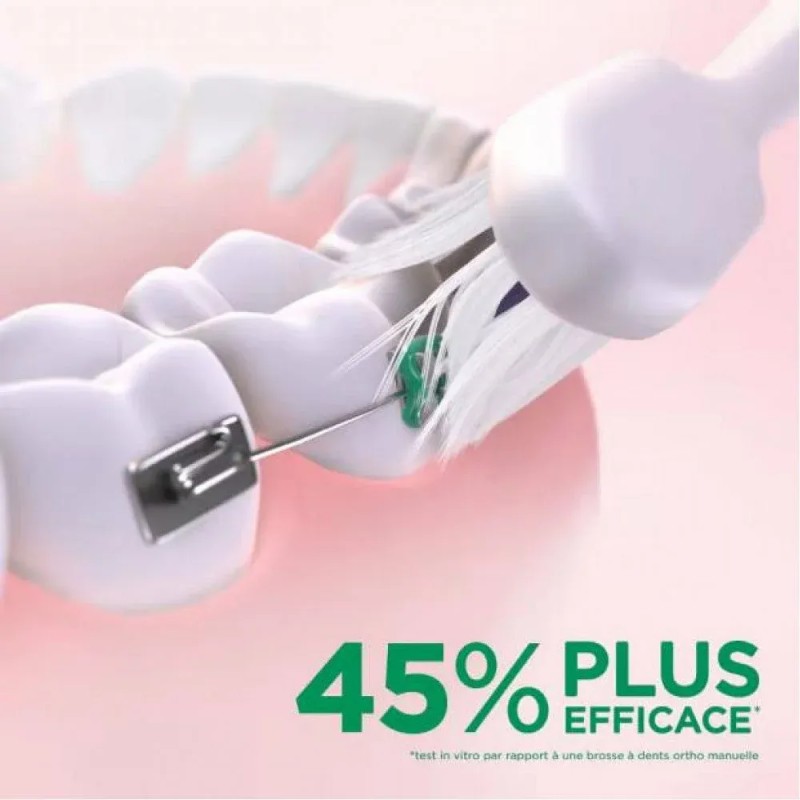 La Gum Sonic Ortho Brosse est une brosse à dents électrique sonique spécialement conçue pour les personnes portant un appareil dentaire. Elle offre un nettoyage 45% plus efficace qu'une brosse à dents orthodontique manuelle.