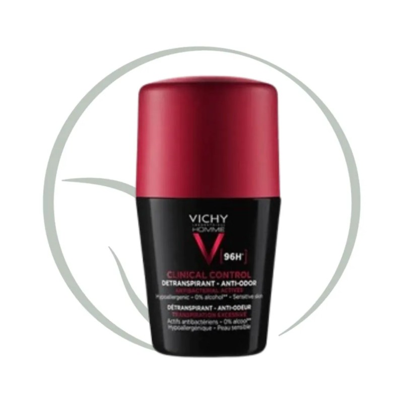 - Le déodorant VICHY HOMME Clinical Control 96h associe une tenue extrême à une action anti-odeurs et anti-humidité grâce au zinc purifiant et à la perlite absorbante et matifiante.
