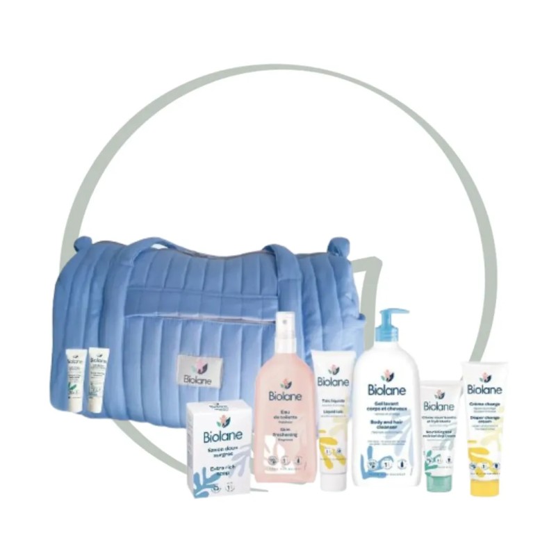 Ce sac Biolane Maman contient une sélection de soins doux, spécialement formulés pour la peau sensible de bébé. Il est parfait comme trousse de naissance, cadeau de maternité ou kit de soins prêt à l'emploi pour les parents.