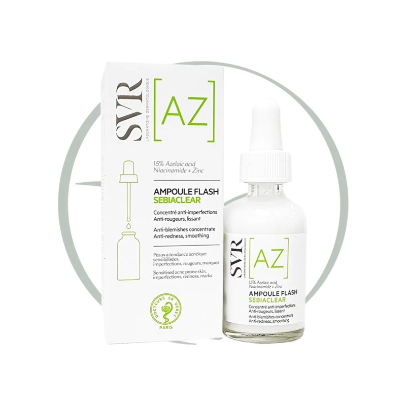 SVR Sebiaclear Ampoule AZ Flash Anti-Imperfections : La solution complète et rapide contre imperfections, rougeurs et marques, pour une peau nette, apaisée et lisse.