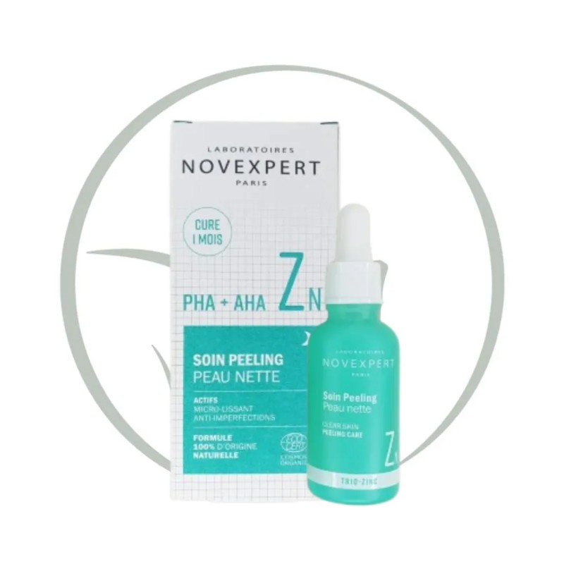 Novexpert Soin Peeling Peau Nette : Le double peeling intelligent (AHA+PHA) associé au Trio-Zinc pour un renouvellement cutané complet : jusqu’à -50% d’imperfections en 28 jours, sans irritation ni alcool.