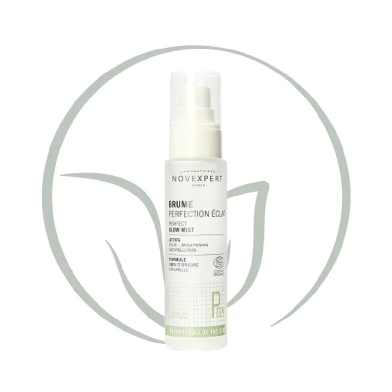 Novexpert Brume Perfection Éclat : Le soin multi-usages 100% naturel aux polyphénols de thé vert qui éclaircit les taches, illumine le teint et stimule la protéine antitaches naturelle de la peau. Tonique, soin éclat, fixateur.