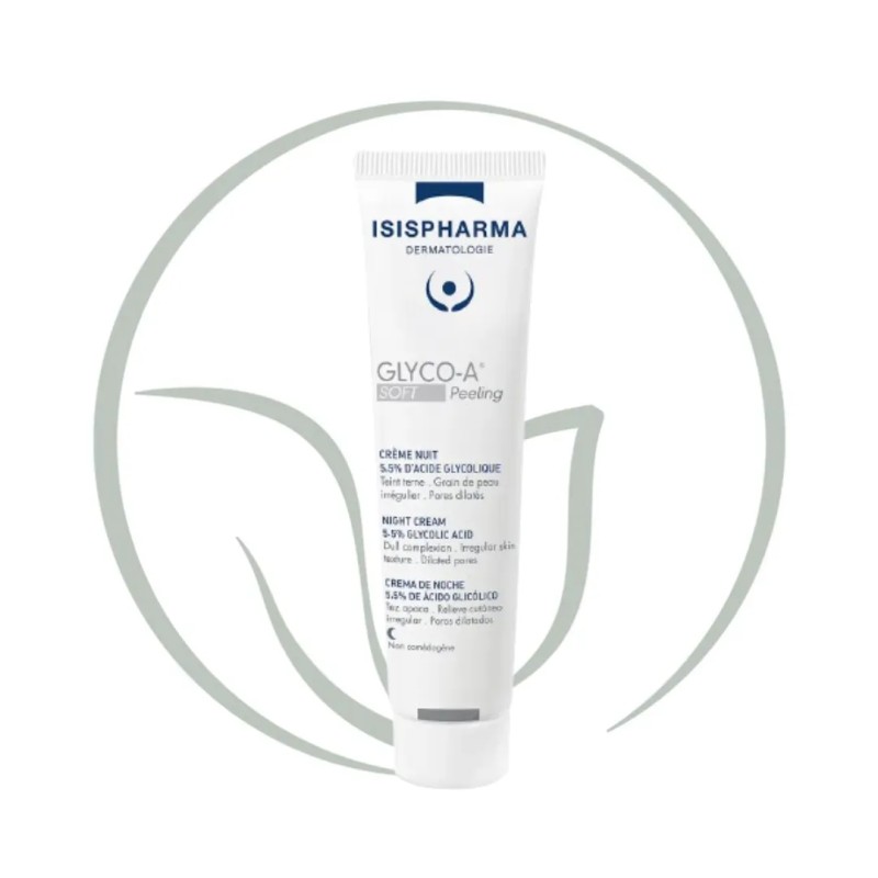 La crème de nuit GLYCO-A SOFT Peeling offre les performances d'un peeling superficiel, avec une concentration plus douce de 5,5% d'acide glycolique , considéré comme l’actif le plus efficace de la famille des AHA*, qui favorise l'exfoliation de la peau et stimule le renouvellement cellulaire.