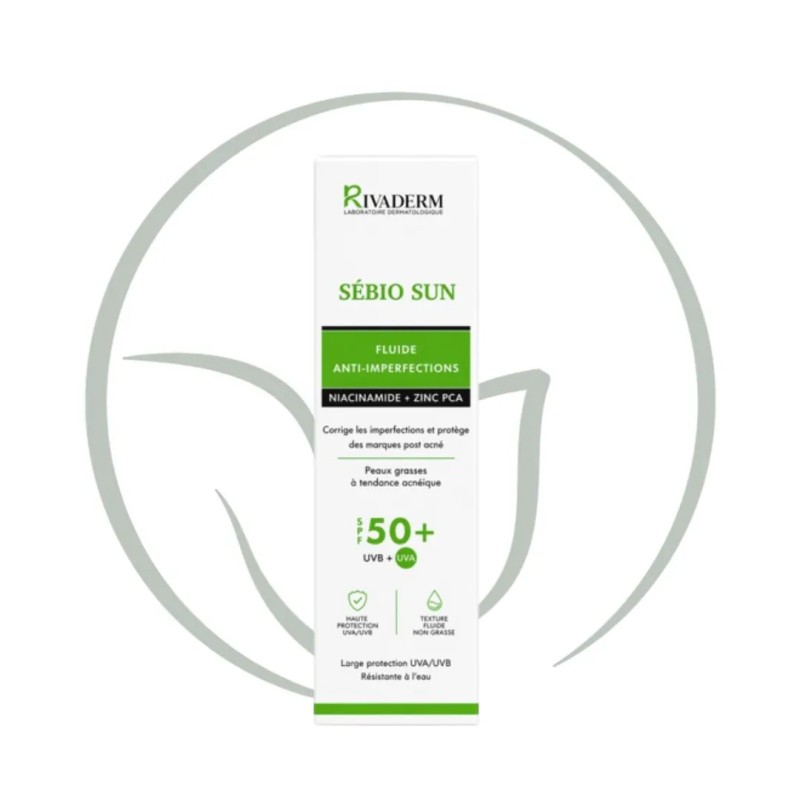 Rivaderm Sébio Sun Fluide Anti-Imperfection SPF50+ : La protection solaire haute performance, matifiante et anti-imperfections pour les peaux grasses et acnéiques.